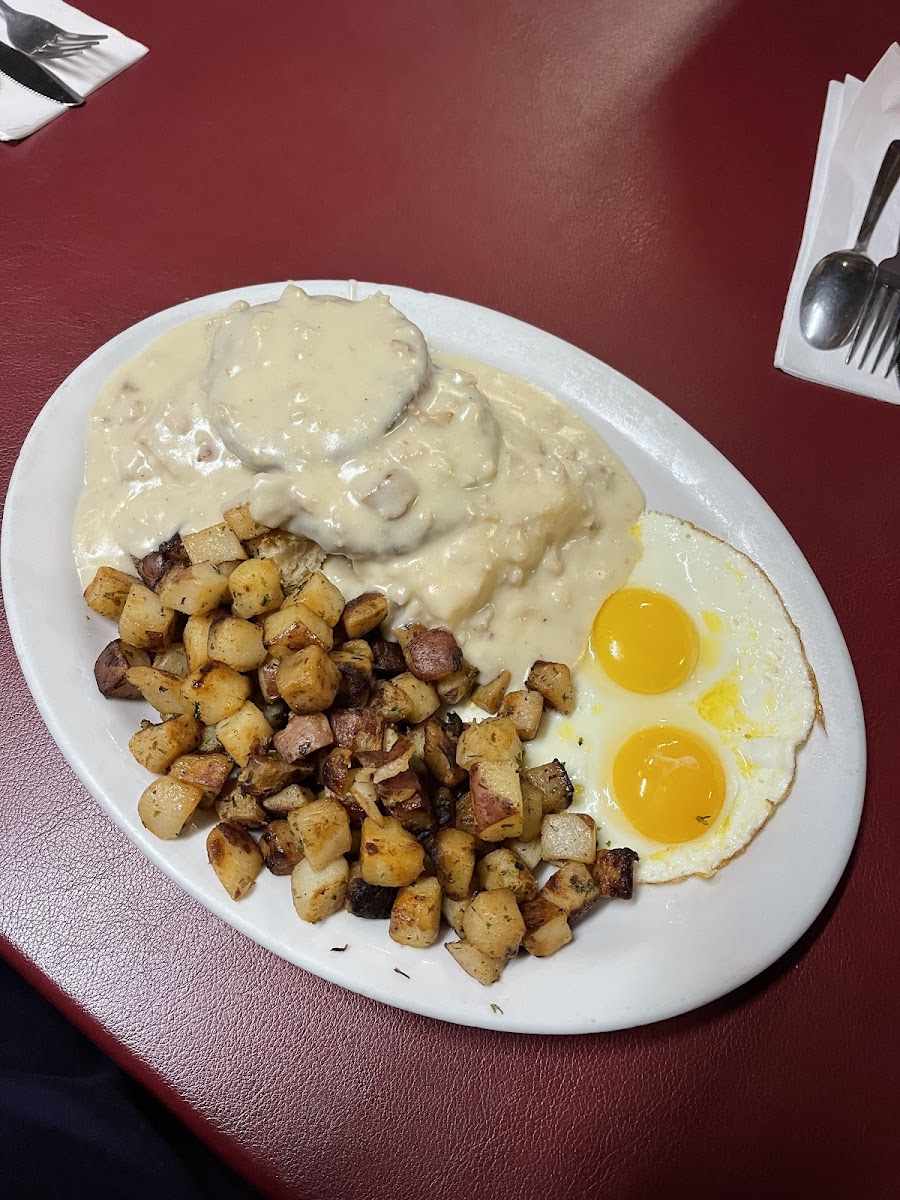 Cricket Country Kitchen specializes in classic American breakfast and comfort food, expertly prepared to satisfy even the heartiest of appetites. Start your day with their Cricket's Famous Favorite: Biscuit & Gravy, where a perfectly baked biscuit is generously topped with savory sausage gravy for just $7.50. For a more filling option, the Kountry Breakfast serves up a delicious large biscuit paired with two eggs and your choice of sausage patty or crispy bacon for $14.50. And if you're in the mood for something extra special, try the Special K, featuring diced ham and scrambled eggs nested on a homemade biscuit, complemented with savory country potatoes for $13.99.